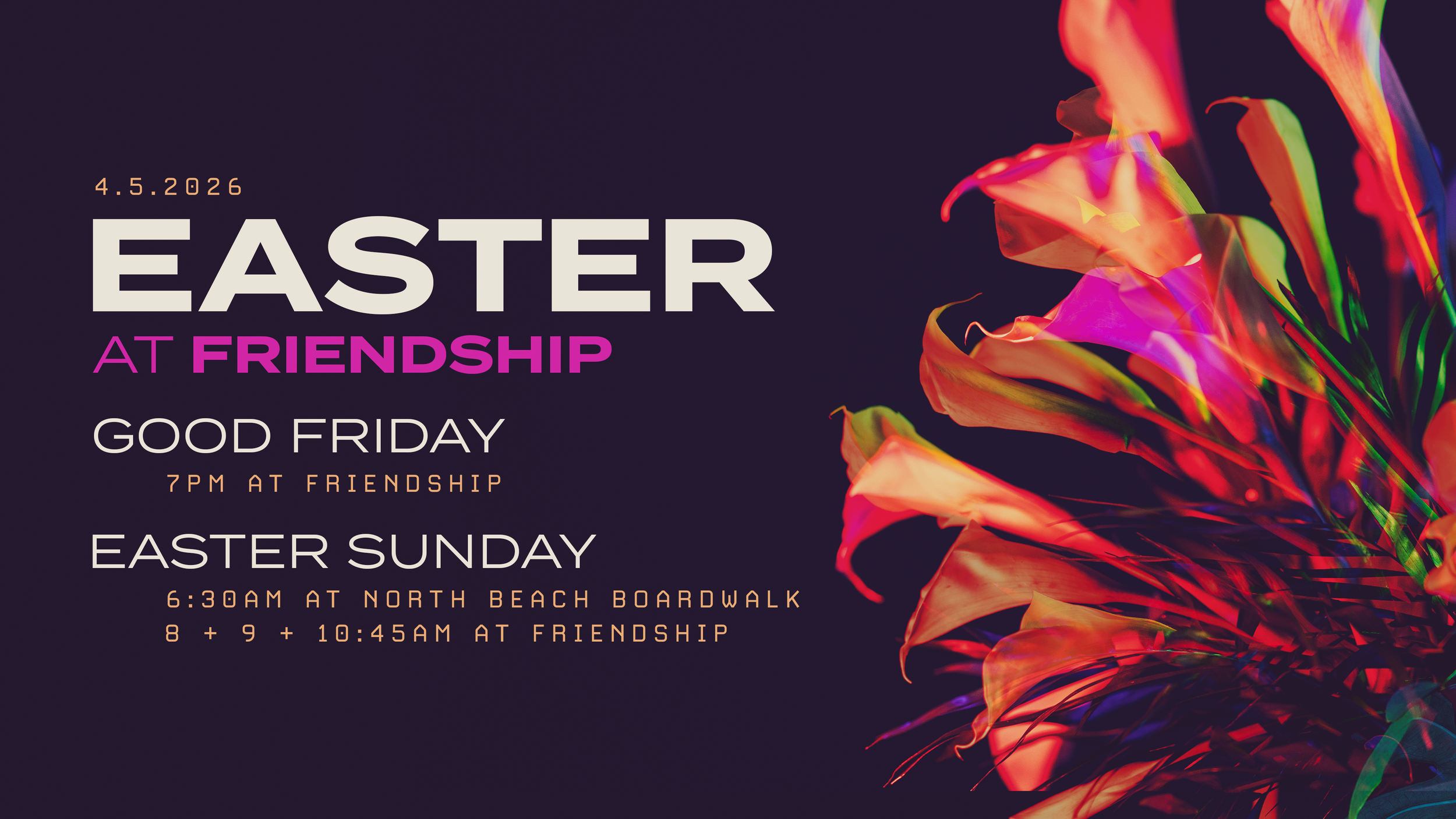 9:00 & 10:45AM at Friendship - Full Easter services with baptisms at our regular services times. Nursery and FriendshipKIDS provided.